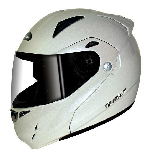 The Rjays TSS Tour-Tech flip-up helmet offers you the advantages of the original helmet with the added benefit of the TSS Twin Shield System. With a flick of the TSS switch on the side of the helmet, you will have a Dark tint visor that slides out from inside the shell like an instant pair of sunglasses.
